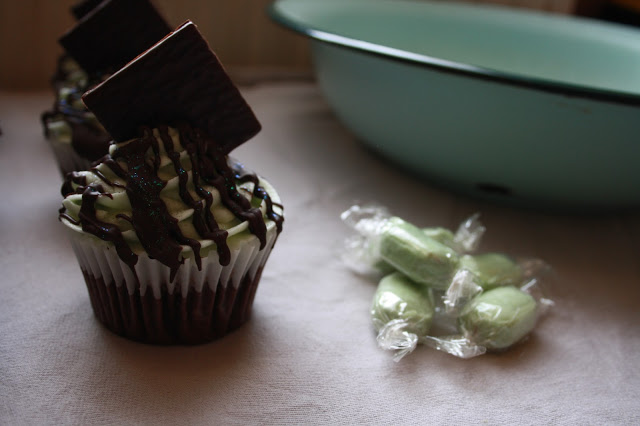 These cupcakes are, for lack of a better word, ridiculous. I mean, look at them...they've got green edible glitter on them for goodness sake! But sometimes needs must.