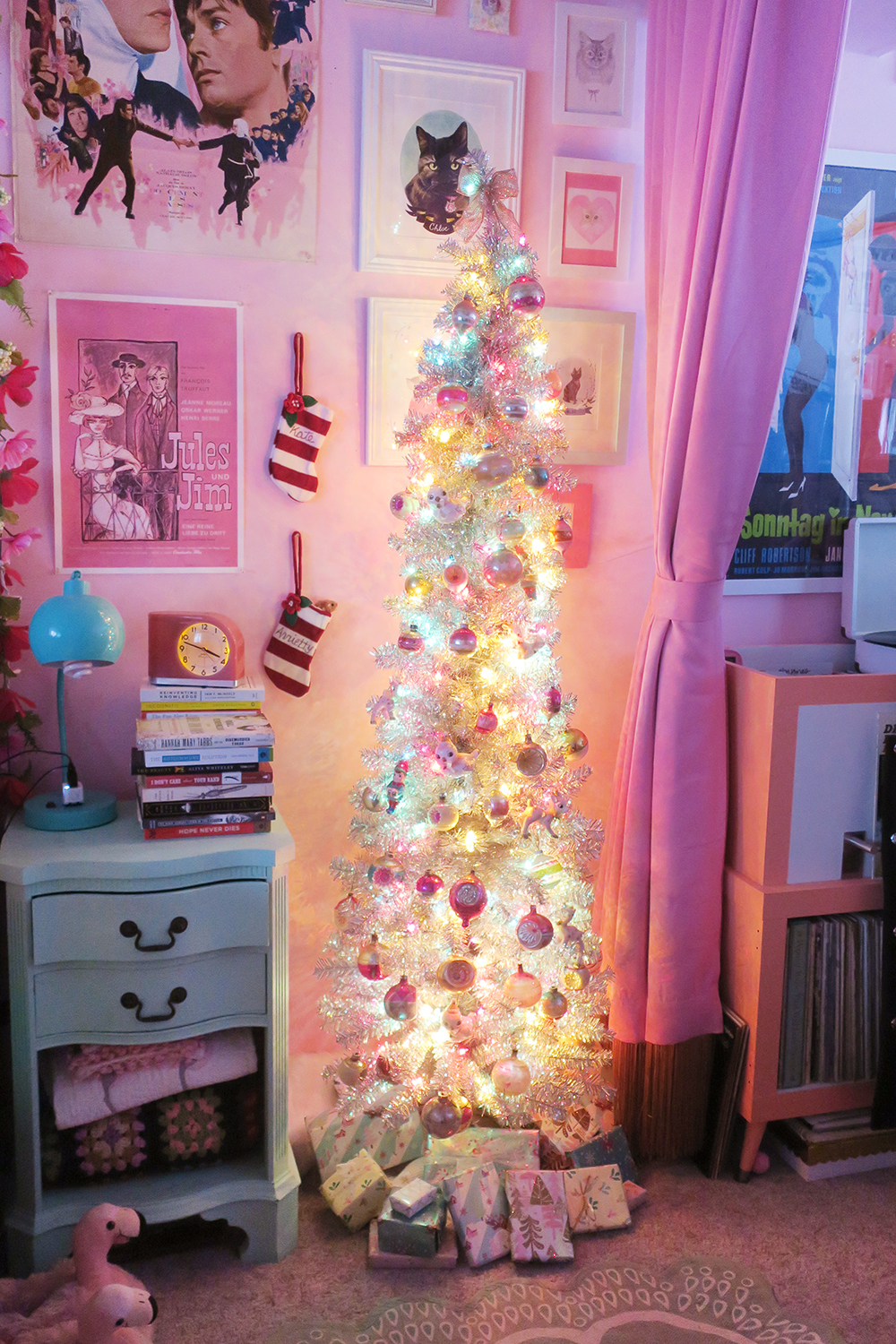 This tree is so teensy, only like 12" tall! And it's my oldest tree. I've had this one ever since I started decorating my childhood bedroom when I was in my early 20's.