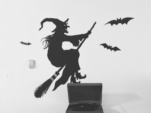 Every year on Halloween I throw a costume party, and this year I had it at my apartment! A lot of the rooms are still not finished (we had to use folding lawn chairs at my dining room table) but my kitchen is functional and I have enough complete that I thought I was ready for my first little party :) I went to Michaels on Halloween morning and they had all their decorations 80% off! I got a huge removable decal kit that was $20 marked down to $4 (!!) as well as some plastic pumpkins and glittery pipe cleaner cats and spiders. I couldn't get over how cheap everything was.. I'm definitely doing my holiday decoration shopping last-minute from now on! :)